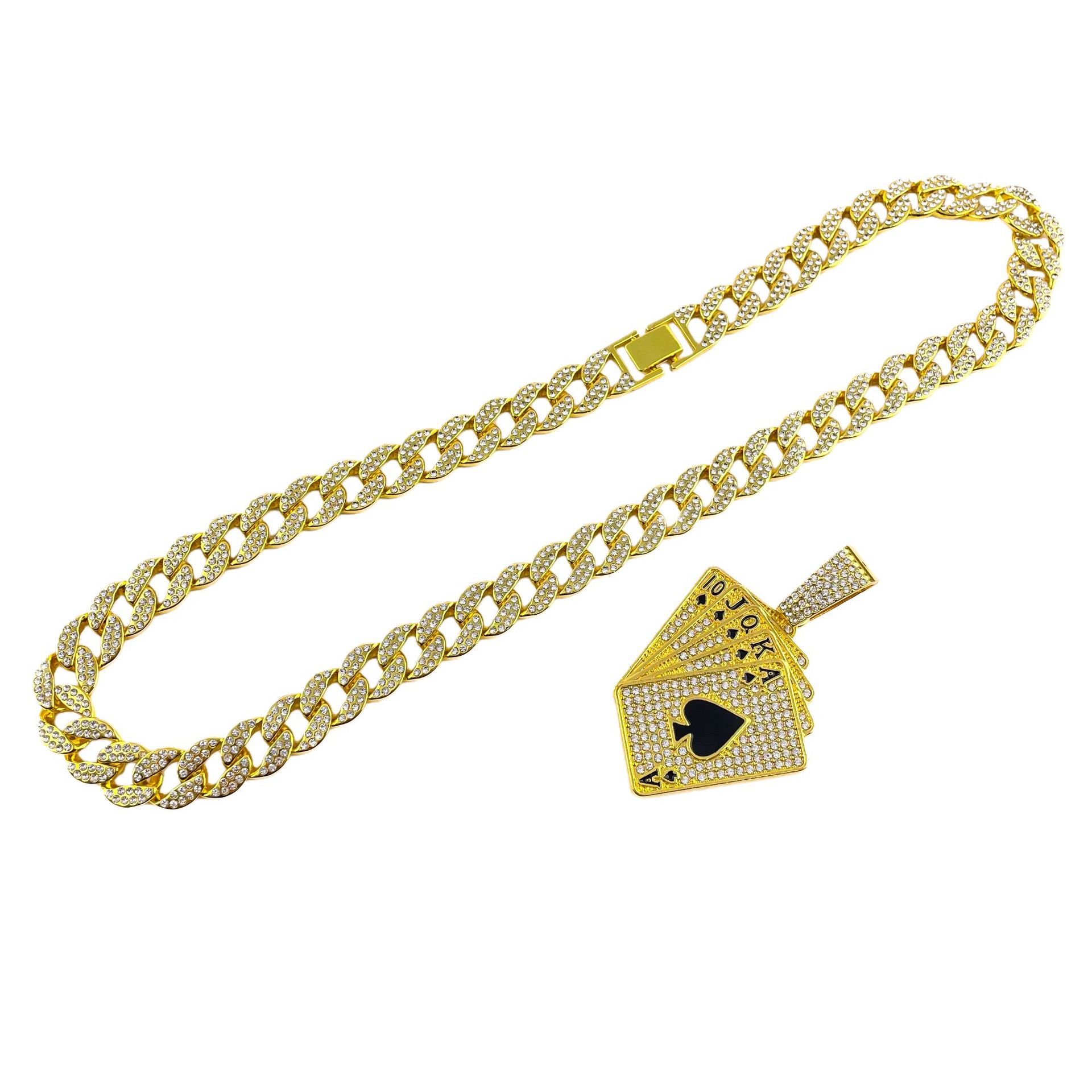 European and American Hip-Hop Stylish Full Diamond Playing Card Pendant Necklace Accessories Rap Hip-Hop Cool Punk Necklace