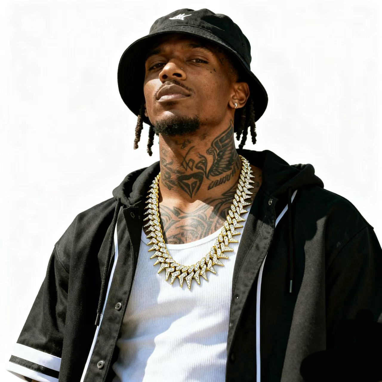 Full Diamond Rap-Style Spiked Thorn Diamond-Encrusted Cuban Chain Punk Retro Hip-Hop Trendy Brand Collarbone Chain Short Choker Necklace