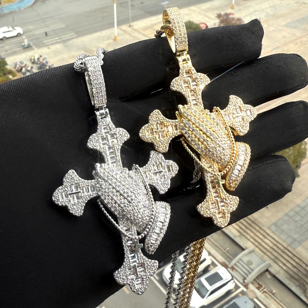 European and American foreign trade new prayer cross zircon pendant necklace hip hop rap men's necklace in stock wholesale tide