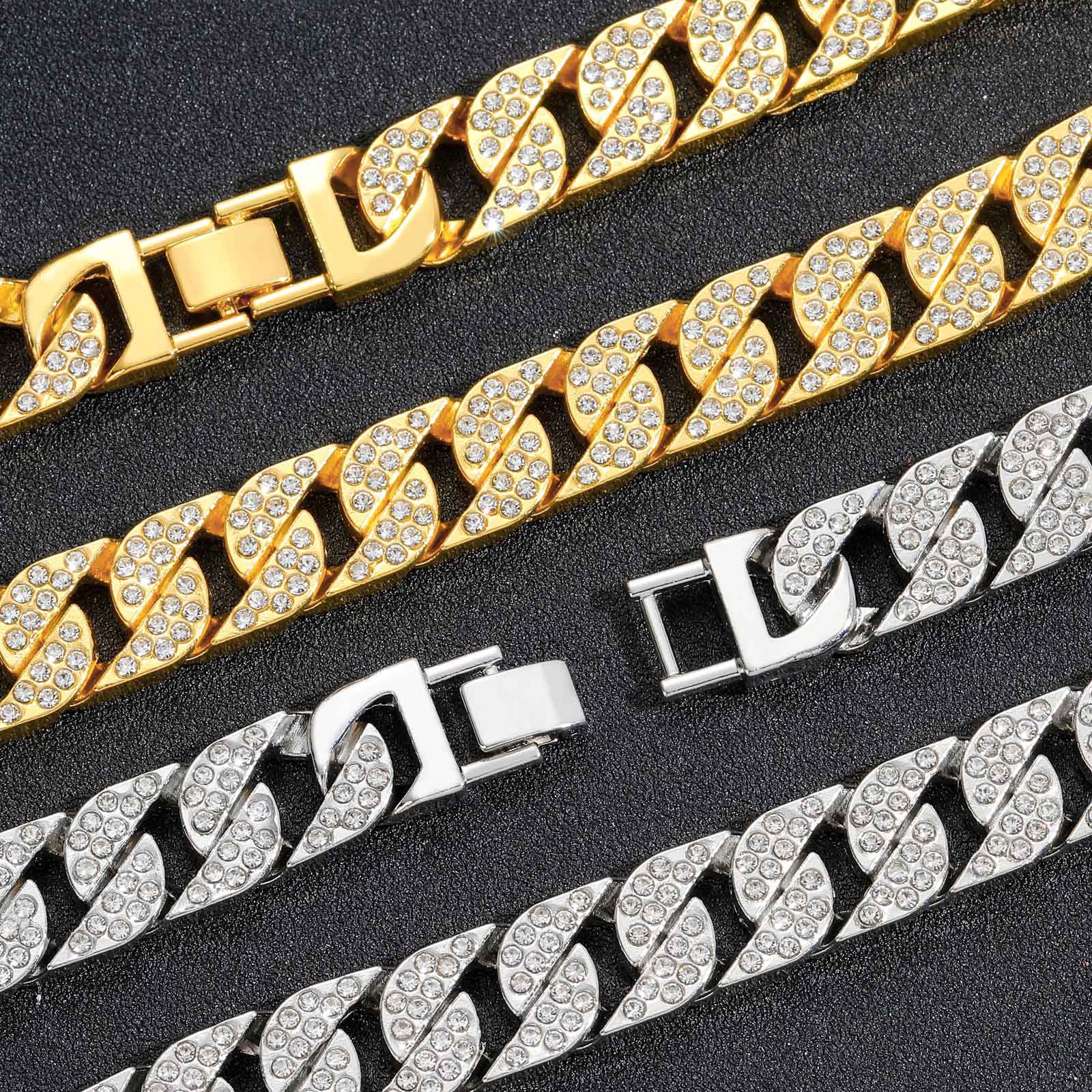 Cross-border explosions rap full diamond alloy Cuban necklace high sense men's and women's bracelets European and American hip-hop jewelry wholesale