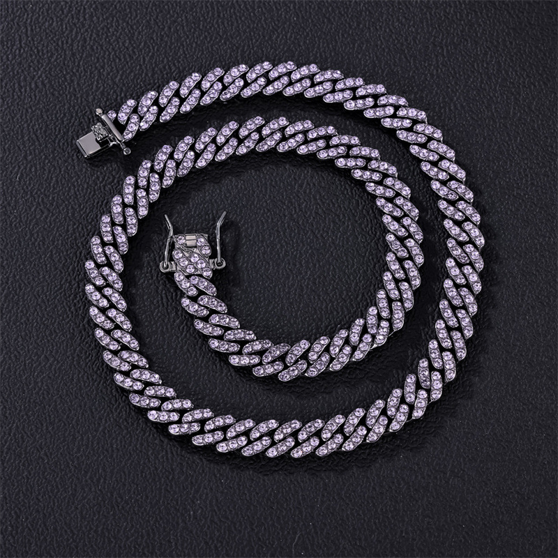 European and American hip-hop 9mm diamond-studded 18inch Cuban chain necklace for men and women fashion all-match rap rapper