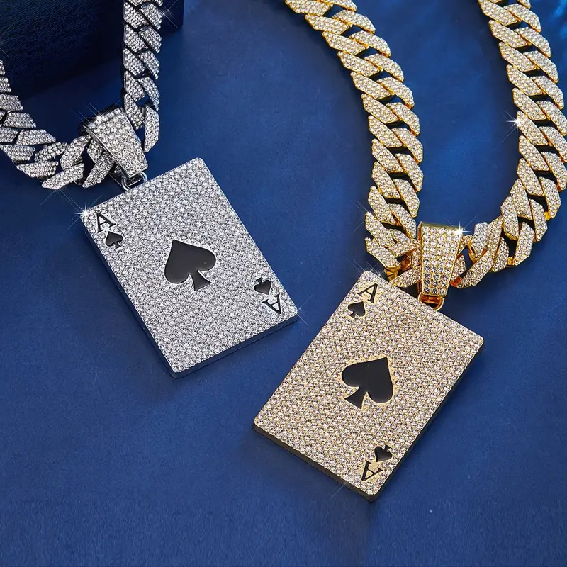 Cross Border Hip Hop Pendant Exaggerated Rap Poker Card spades A Alloy Diamond Necklace Pendant Source Factory
