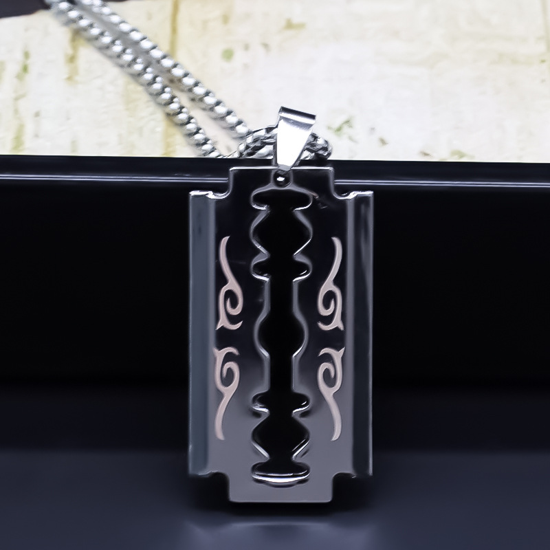 Personalized Creative Square alloy pendant fashion design double-sided blade pendant street fashion Men's hip hop rap necklace