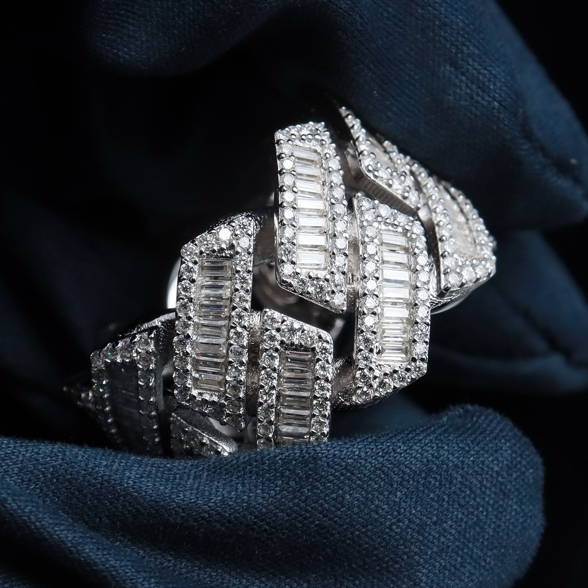 European and American Moissanite Sterling Silver Full Diamond Rhombus Cuban Ring Micro-Paved Diamond Ring Hip-Hop Accessories Rap Trend Ring