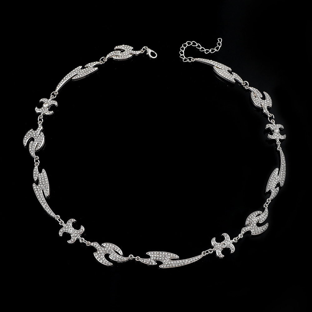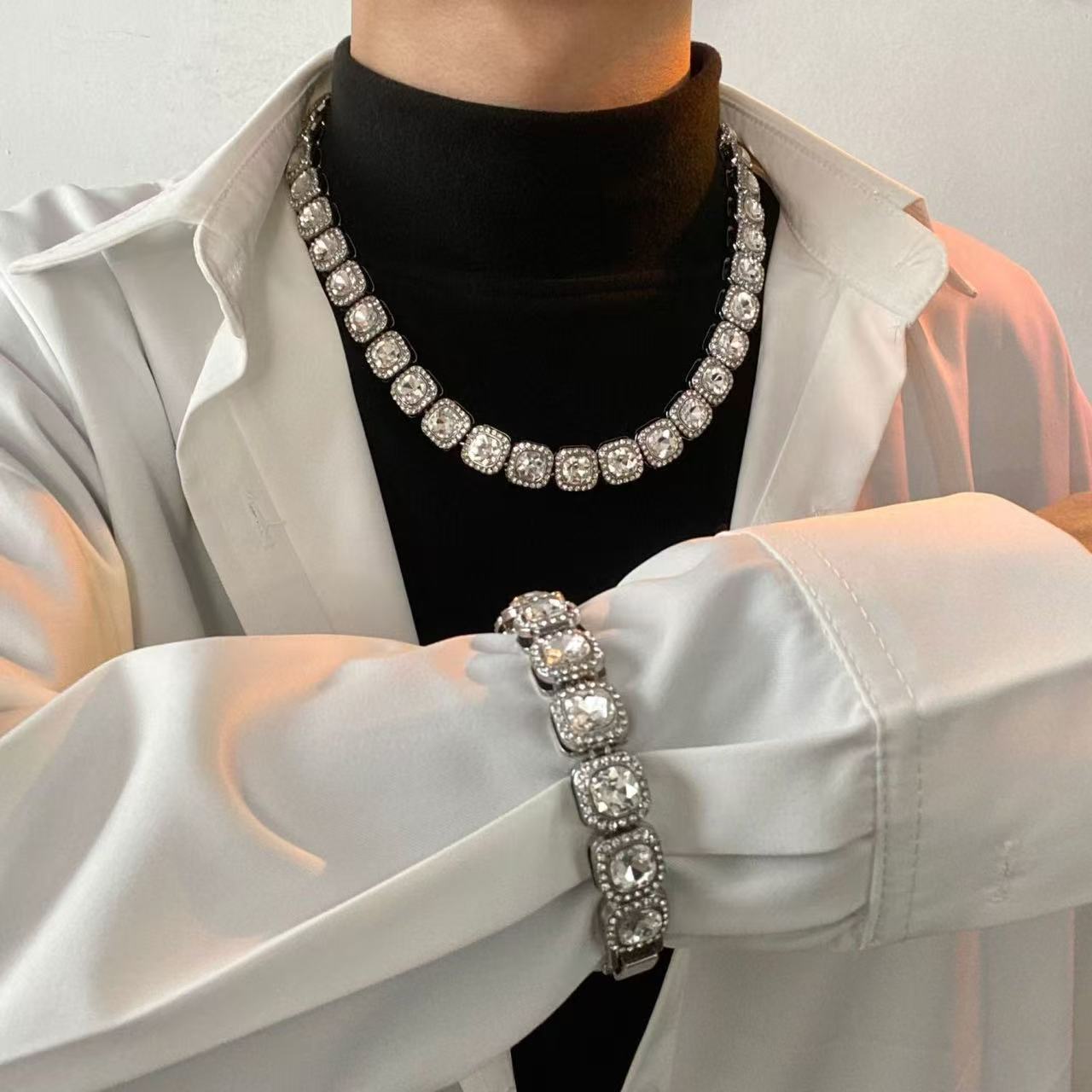 Full Rhinestone Ice Sugar Necklace, Stylish European and American Trendy Brand, Hip-Hop American Street Cuban Rap Alloy Rhinestone Accessory with Row of Rhinestones