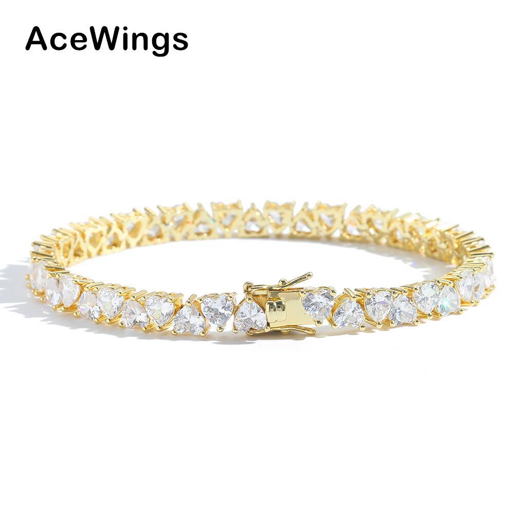 Europe and the United States cross-border explosions color tennis bracelet heart-shaped 4*4mm lovers stacked tennis chain hip-hop love chain