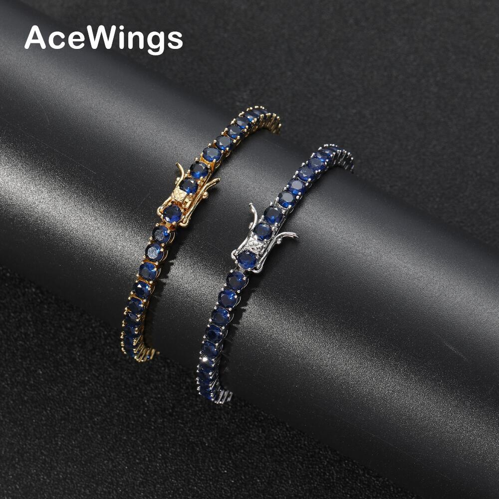 European and American Tennis Bracelet 4mm Blue Full Zirconium Single Row Men's Bracelet Trendy Hip Hop Accessories Zircon Tennis Chain