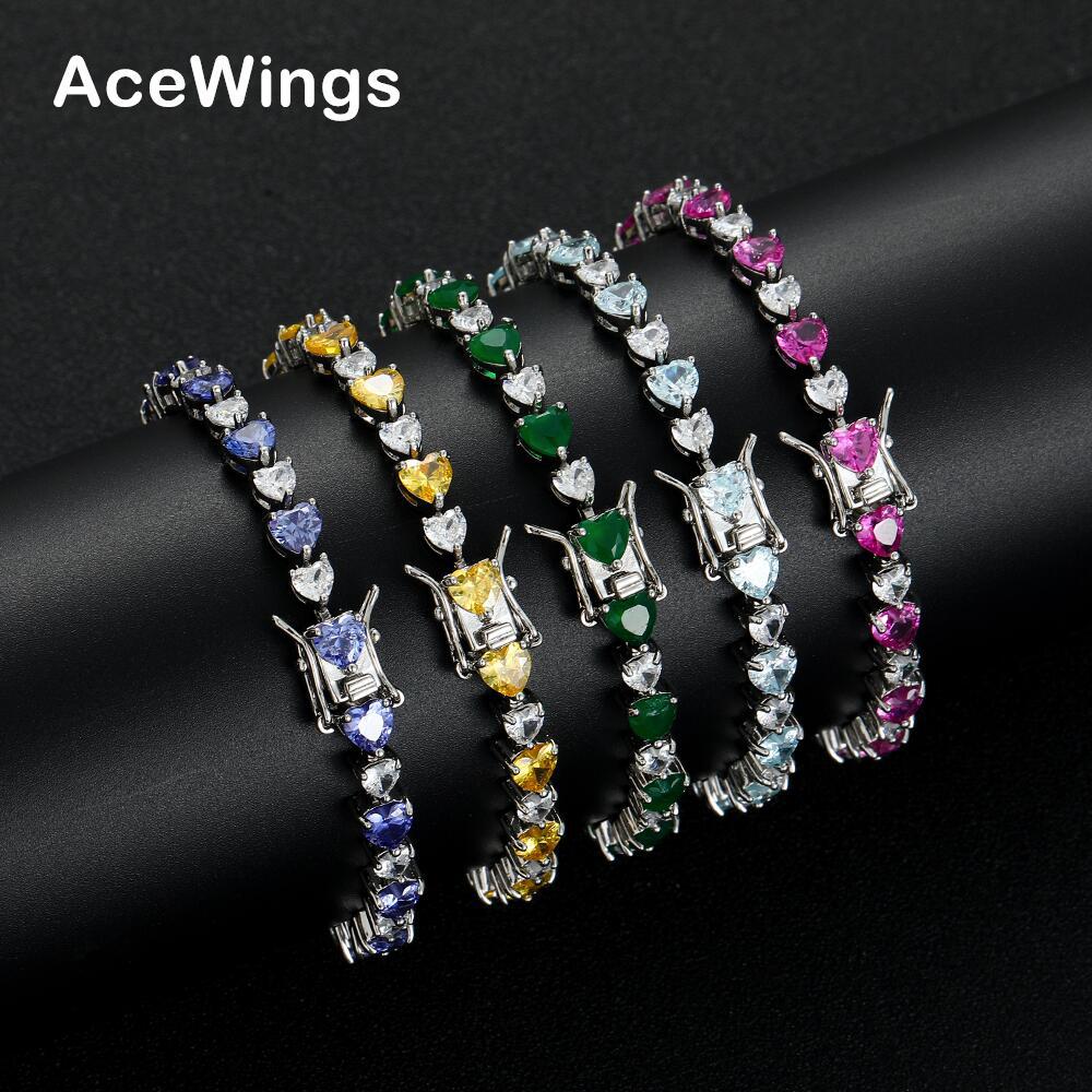 Cross-Border Popular Colorful Heart-Shaped Tennis Bracelet European and American Hip-Hop Couple Stacked Copper Inlaid Zircon Love Tennis Bracelet