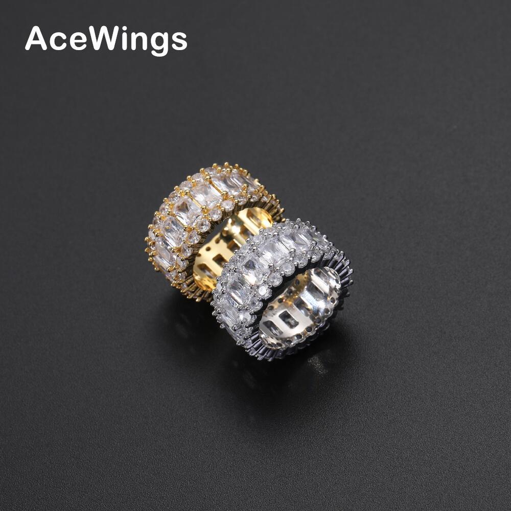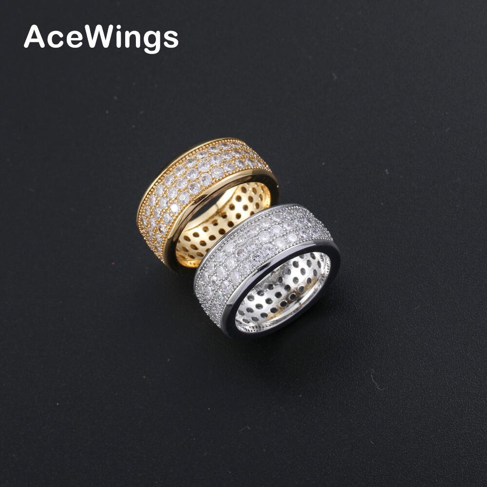 European and American Hip Hop ring Exquisite Wide Copper Round Men's ring Full Zirconium hiphop ring Gold Plated Finger ring