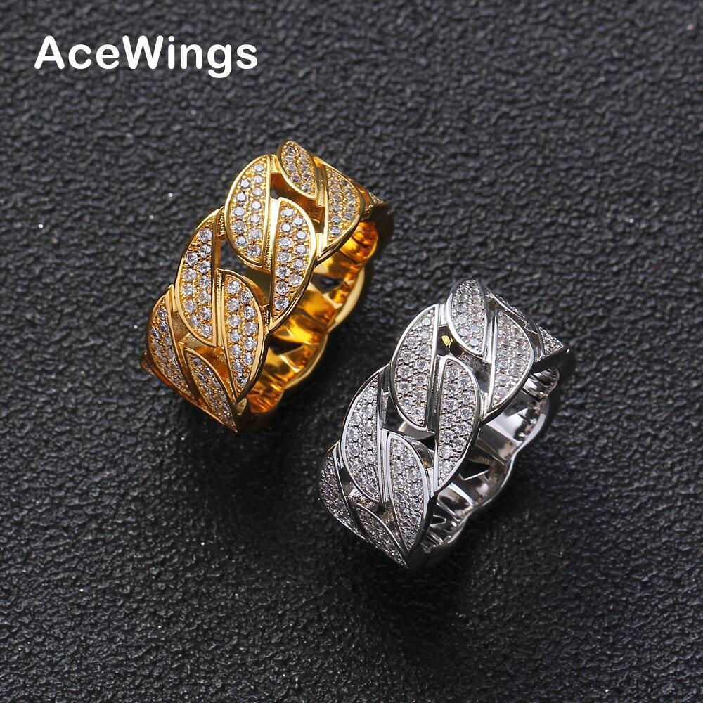 European and American Hip Hop Ring Explosions Men's Cuban Ring Electroplated Zircon Chain Ring Trendy Couple Finger Ring
