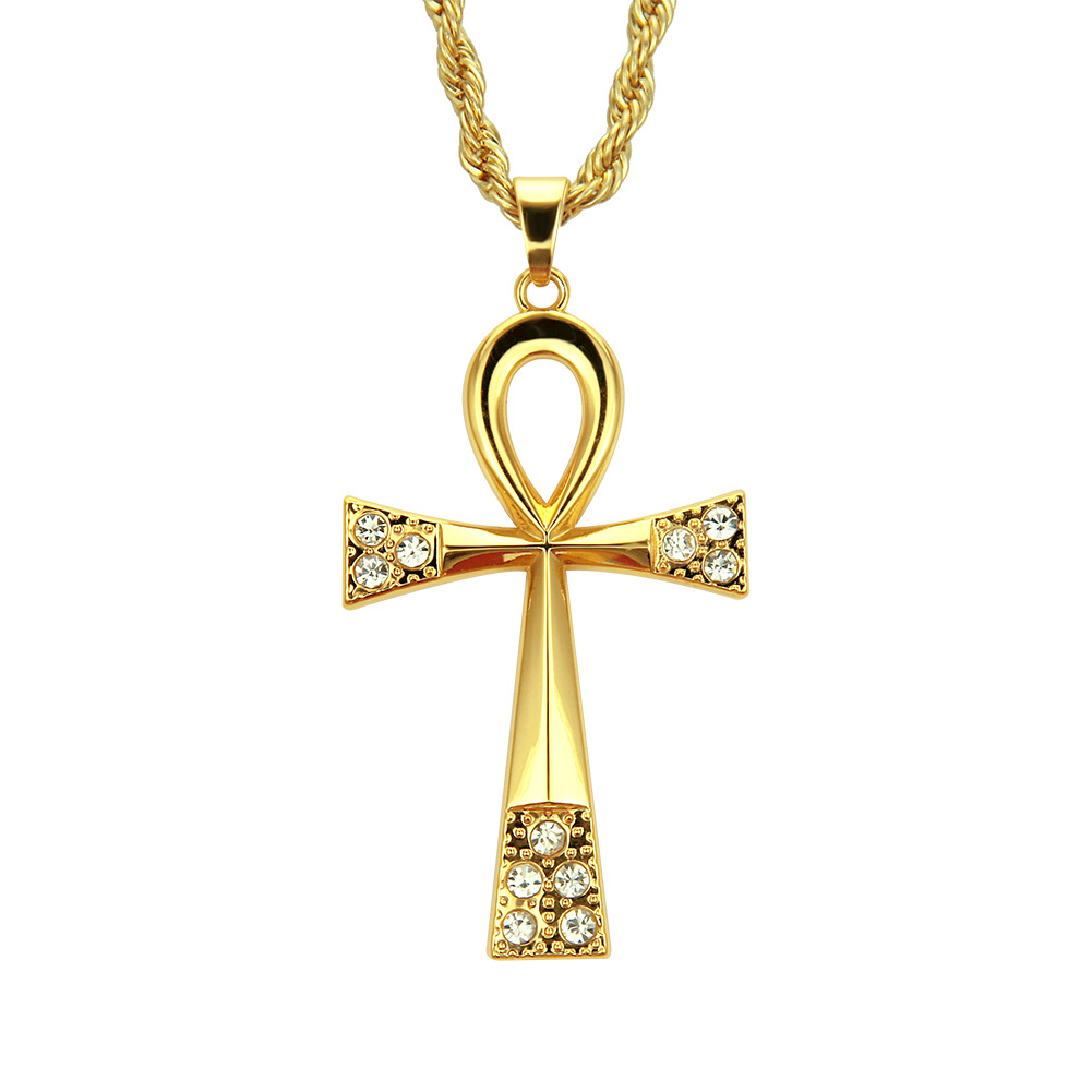 European and American Hip Hop Rap Street Explosions Egypt Anher Diamond Key Pendant Necklace Nightclub Men's and Women's Jewelry