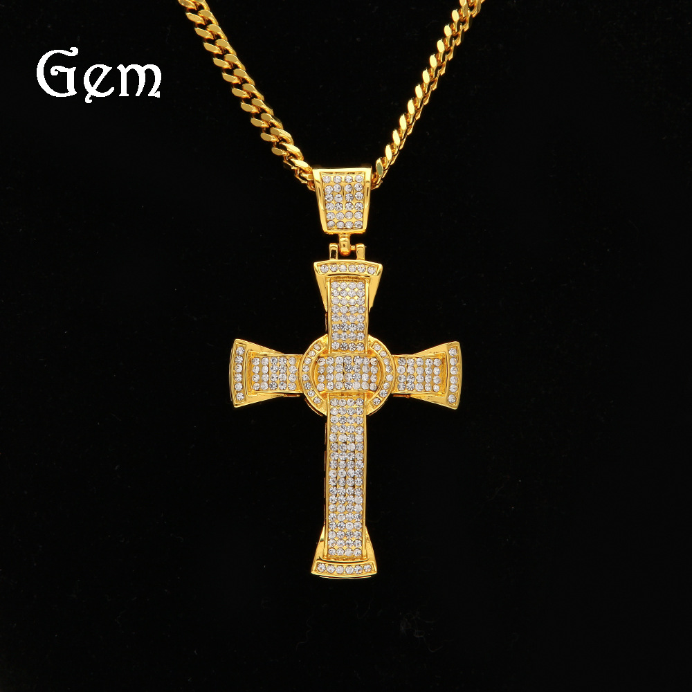Hip Hop Classic Diamond Cross Pendant Alloy Necklace Men Hip Hop Rap Necklace Hiphop Pendant