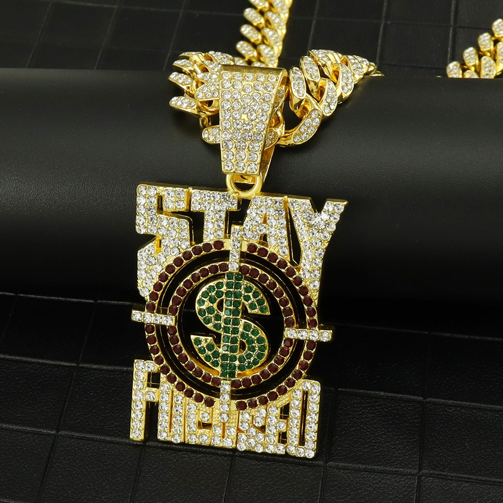 Stay Focused Letter Dollar Pendant Cuban Chain Necklace Trendy Hip-Hop Rap Cool Motorcycle Clavicle Chain