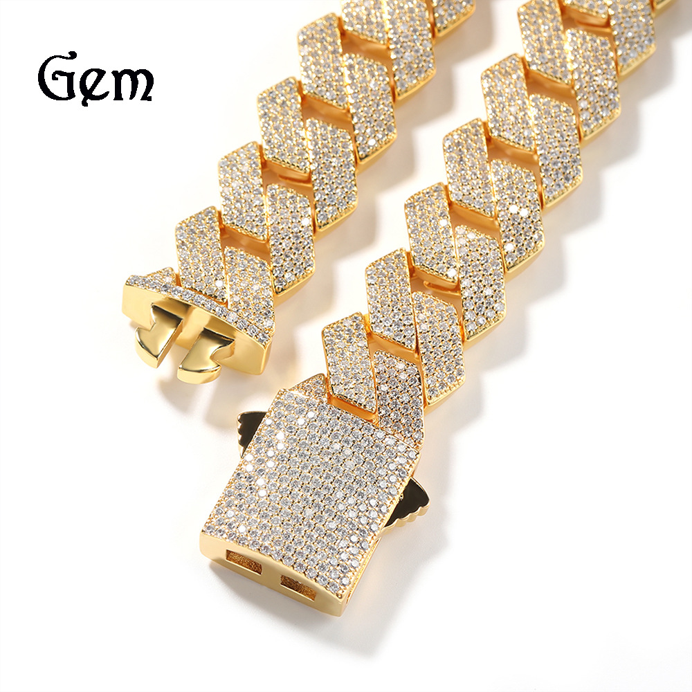 European and American cross-border Men's necklace 19MM full inlaid zircon rhombus Cuban chain hip hop rap Street Fashion necklace