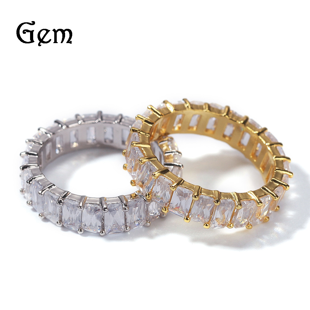 New Hip-Hop Rap Men's Ring Narrow Square Zircon Ring Hiphop Ring Cross-Border Wholesale Jewelry