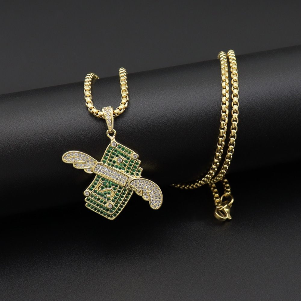 European and American rap personality hip-hop beauty wings micro-inlaid zircon pendant Tide brand Hiphop men's and women's necklace cross-border