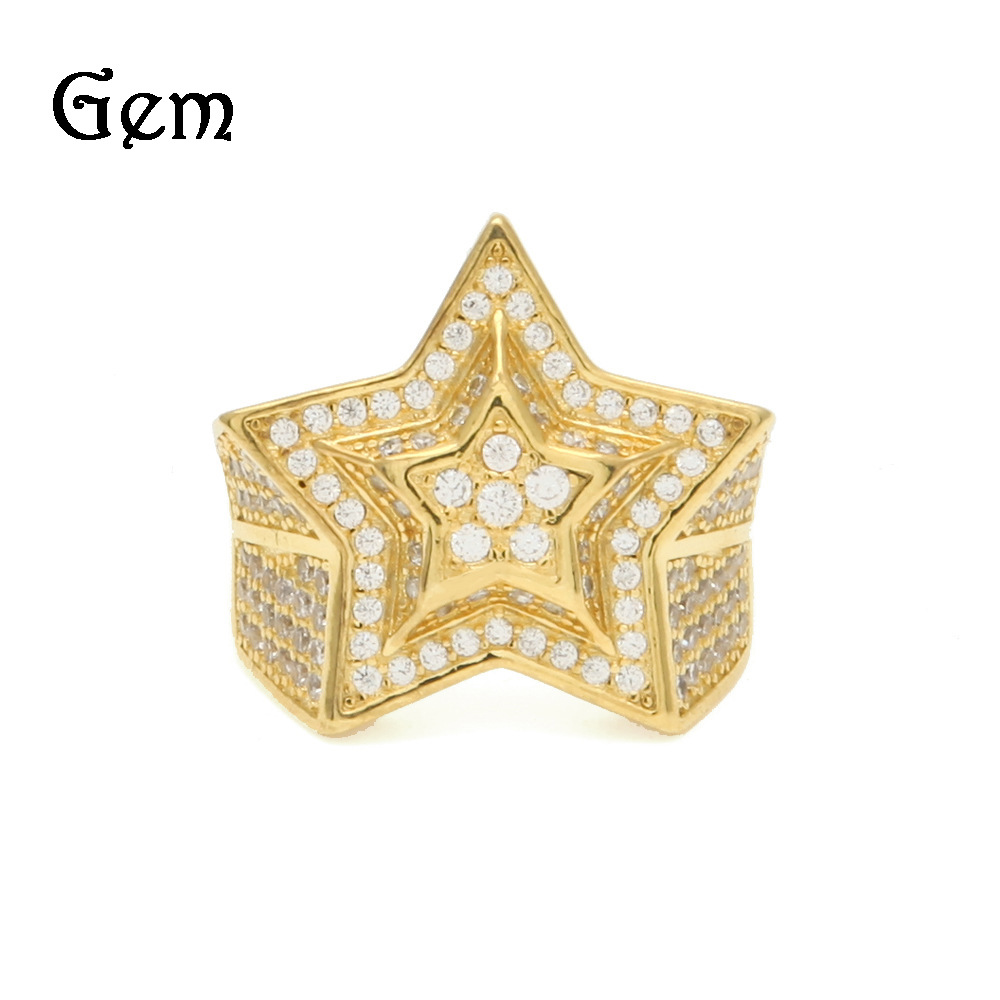 European and American Cross-Border Hip-Hop Rap Personalized Creative Three-Dimensional Five-Pointed Star Ring Copper Inlaid Zircon Men's Ring Wholesale