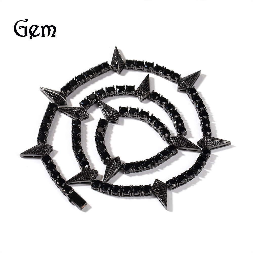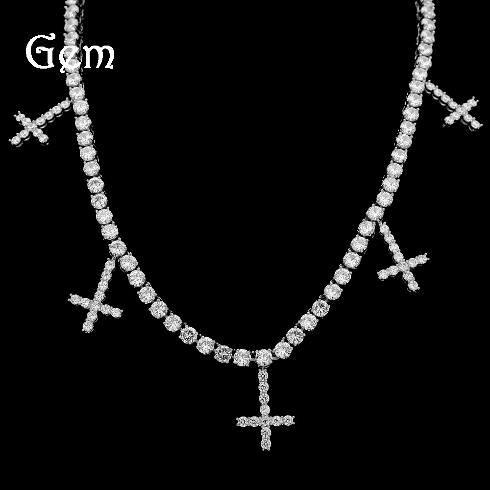 European and American New Hip Hop Zircon One Row Necklace Cross Pendant Personalized Men's Necklace Street Dance Rap Accessories