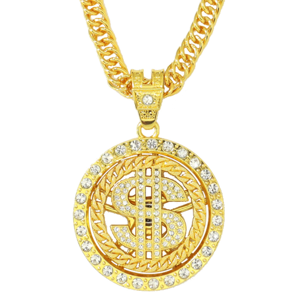 Amazon European and American Hip Hop Diamond-encrusted Rotating Dollar Pendant Necklace Rotating Dollar Rap Big Gold Chain Jewelry Cross Border