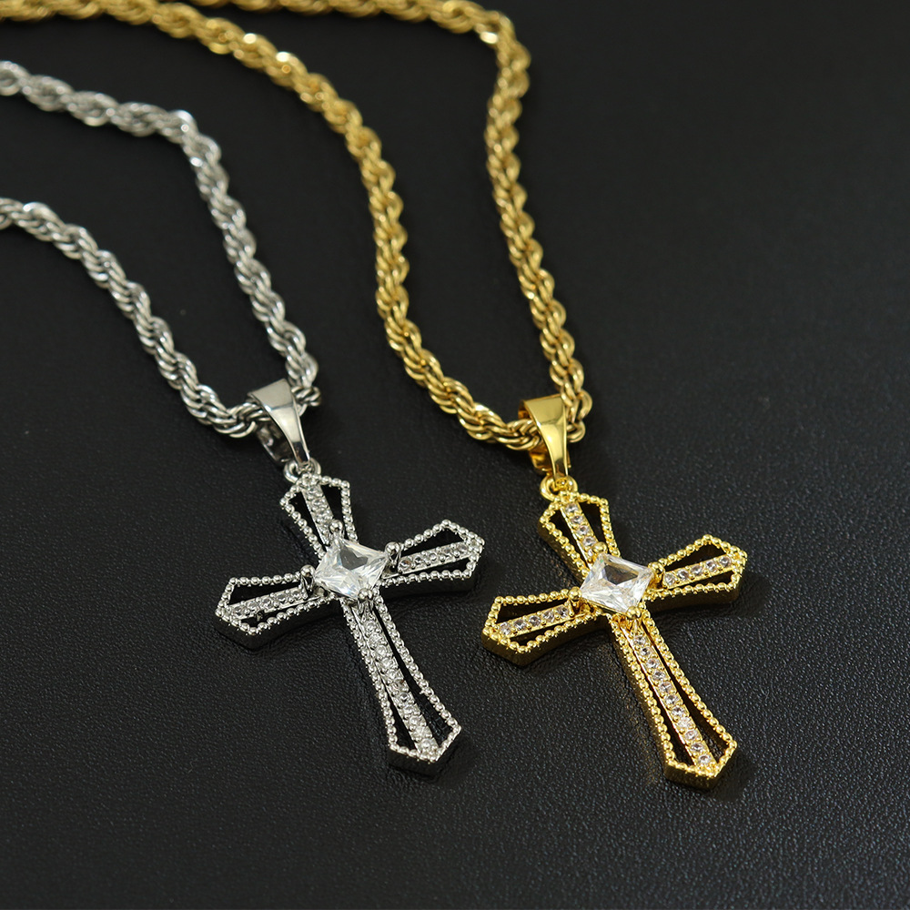 Personality Diamond Cross Pendant Necklace Accessories Pendant European and American Hip-hop Rap Street Dance Cool Punk Necklace