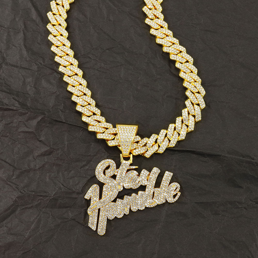 Full Diamond-Studded Letter Pendant Necklace with the Phrase "Stay Humble," European and American Hip-Hop Style, Rhombus-Shaped Chain Choker