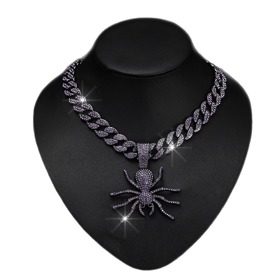 European and American Creative Fashion Purple Rhinestone Spider Pendant Cuban Necklace Ins Niche Personalized Rap Hip-Hop Jewelry