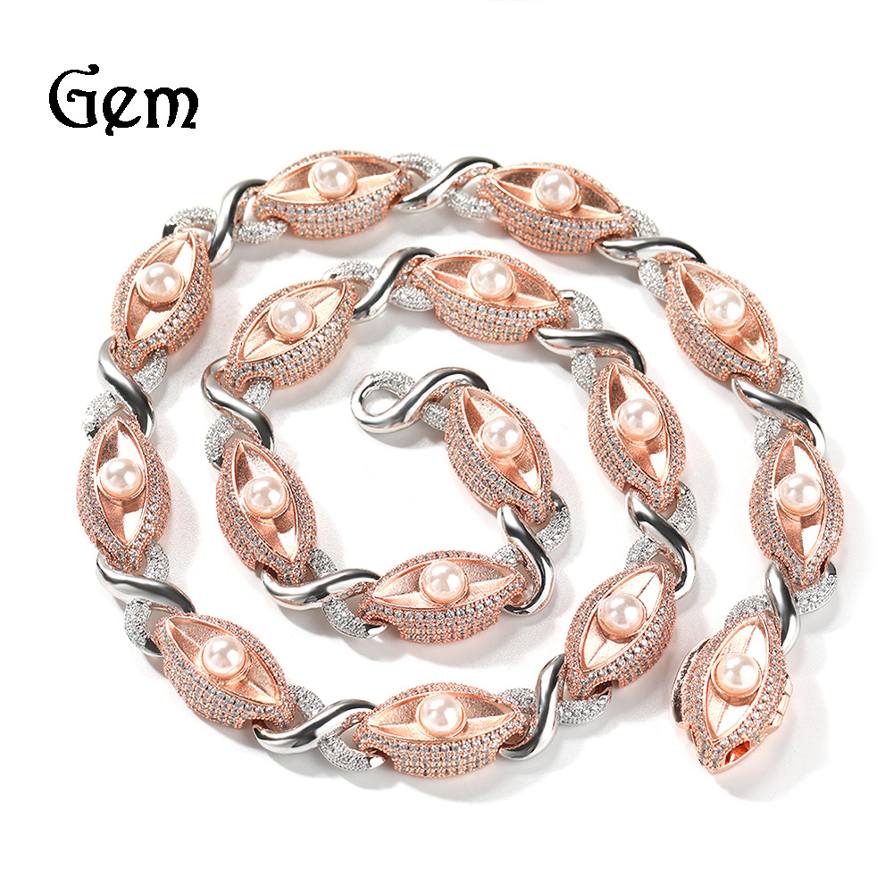 Men's Hip-Hop Rap Accessories, Handsome and Versatile Sandblasted Pearl Eye Chain, Diamond-Encrusted Silver High-End Necklace Wholesale