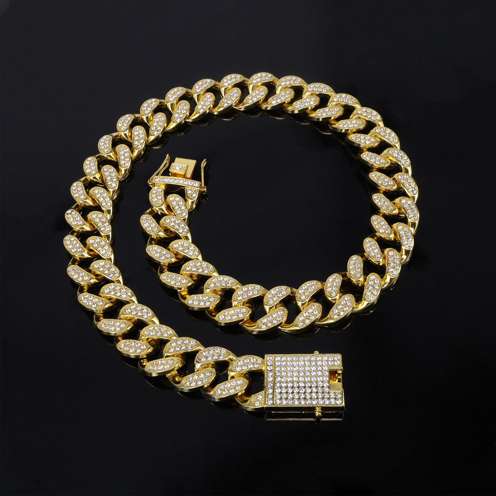 Men's Trendy Jewelry Hip-Hop Necklace Big Gold Chain Cuban Chain Rap Diamond Necklace Hip-Hop Jewelry Wholesale
