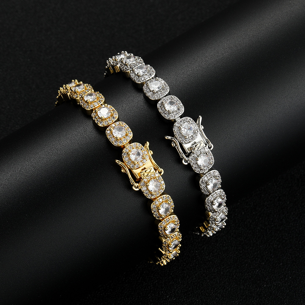 8mm Rock Sugar Chain Men's Hiphop Rap Accessories European and American Hip-Hop Cross-Border Jewelry 18K Gold Zircon Rock Sugar Bracelet