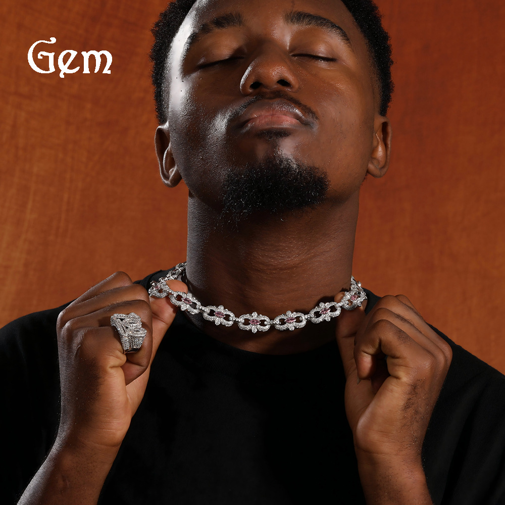 Hip-Hop Vintage European and American Hiphop Rap 16mm Horseshoe Flower Necklace Fashionable High-End Trendy Men's Clavicle Chain