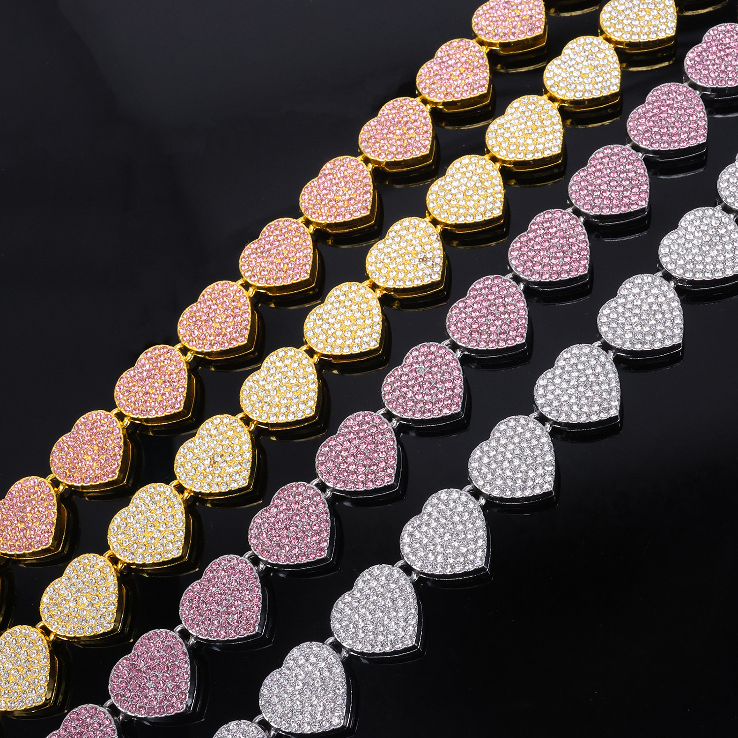 Europe and the United States 10mm diamond heart full drill alloy necklace tide cool rap cross-border hip-hop Cuban chain