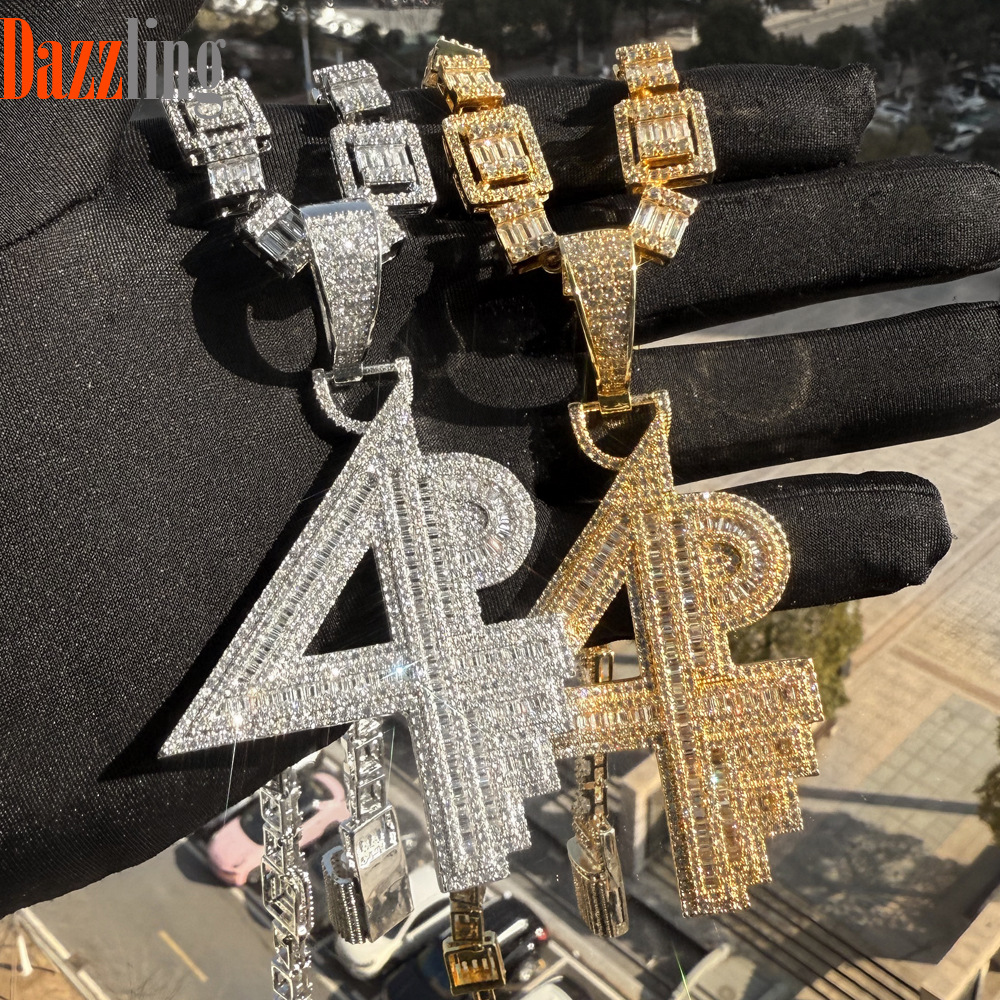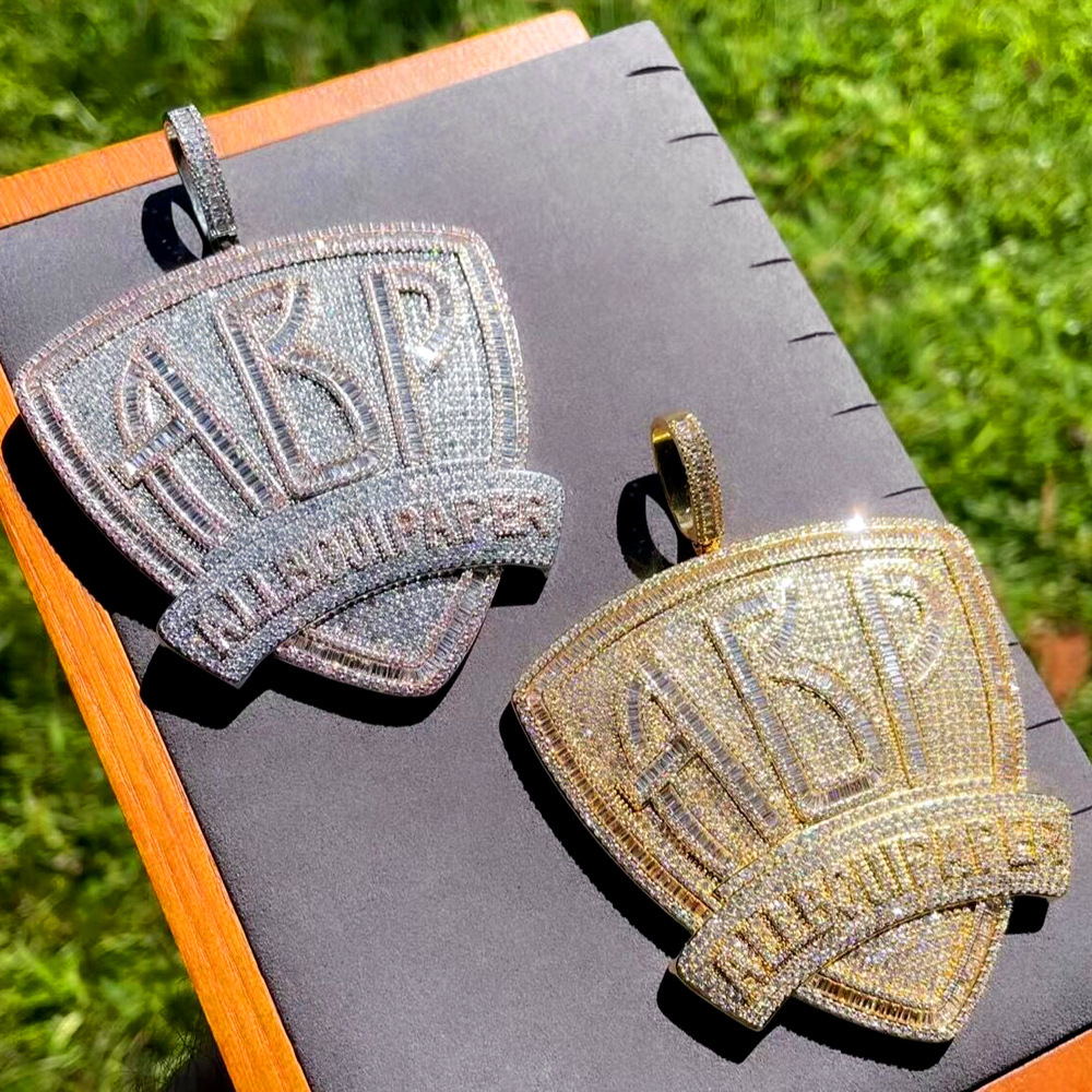 European and American new fashion men's English letters inlaid zircon large shield hip-hop rap hipster pendant cross-border wholesale