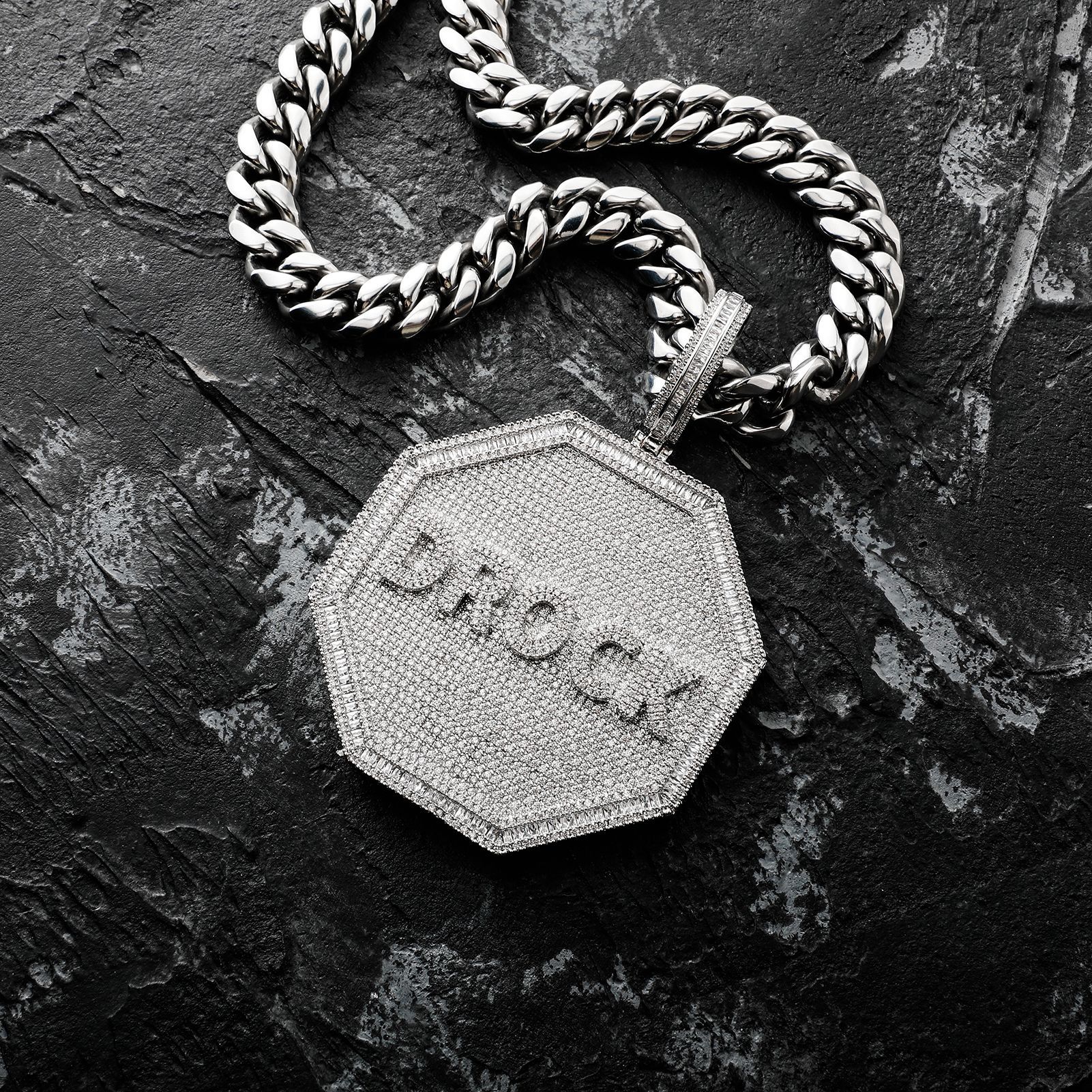 Jinao Custom Hip Hop Octagon Full Diamond Letter Pendant Necklace European and American Street Style Rap Men's and Women's Super Flash Accessories