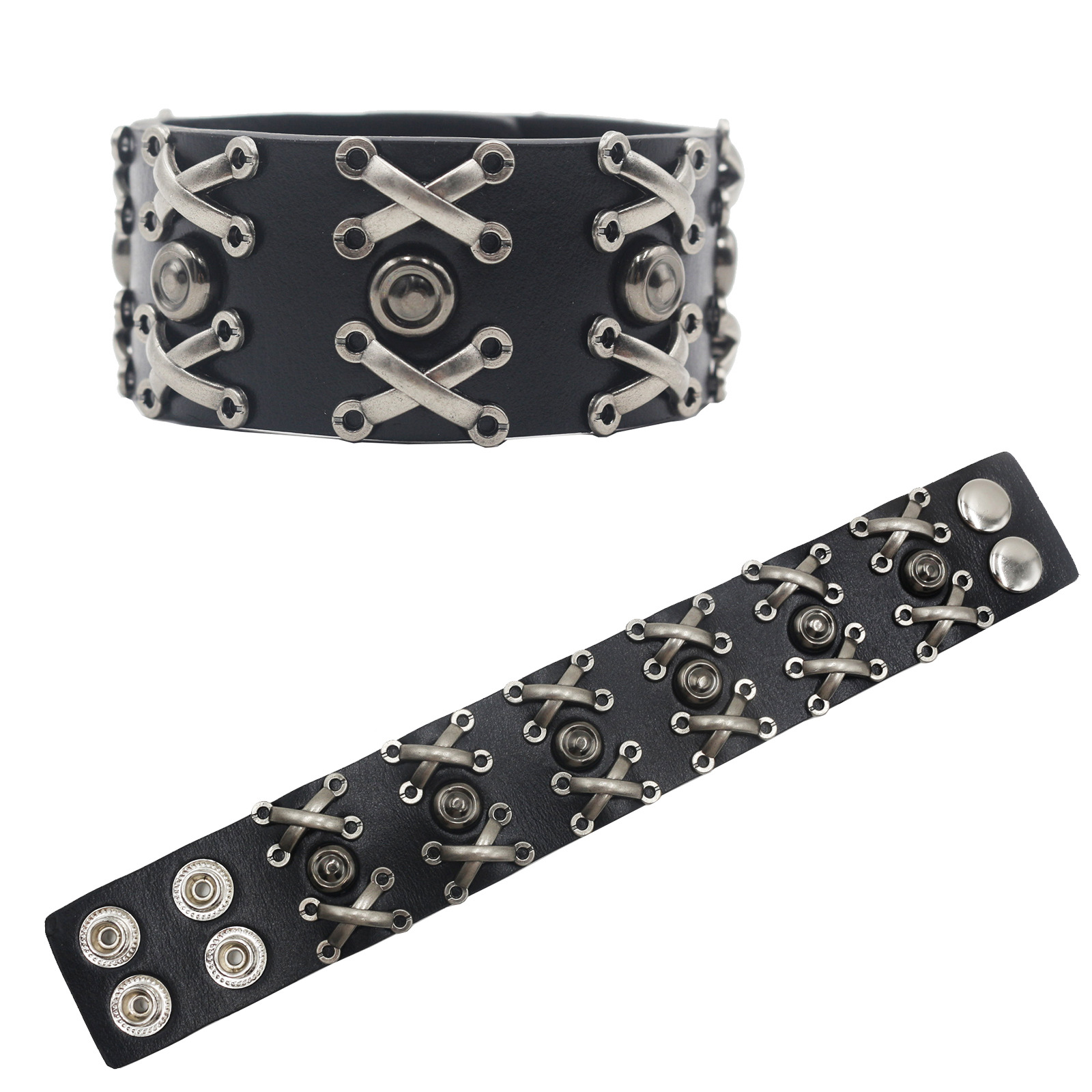 Factory Direct Sales European and American Punk Leather Bracelets Punk Retro Leather Rivet Bracelets Rap Rock Accessories