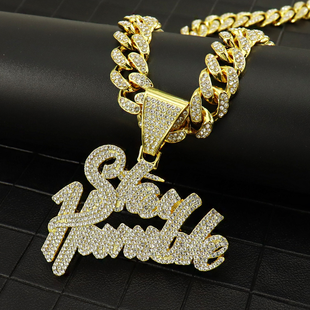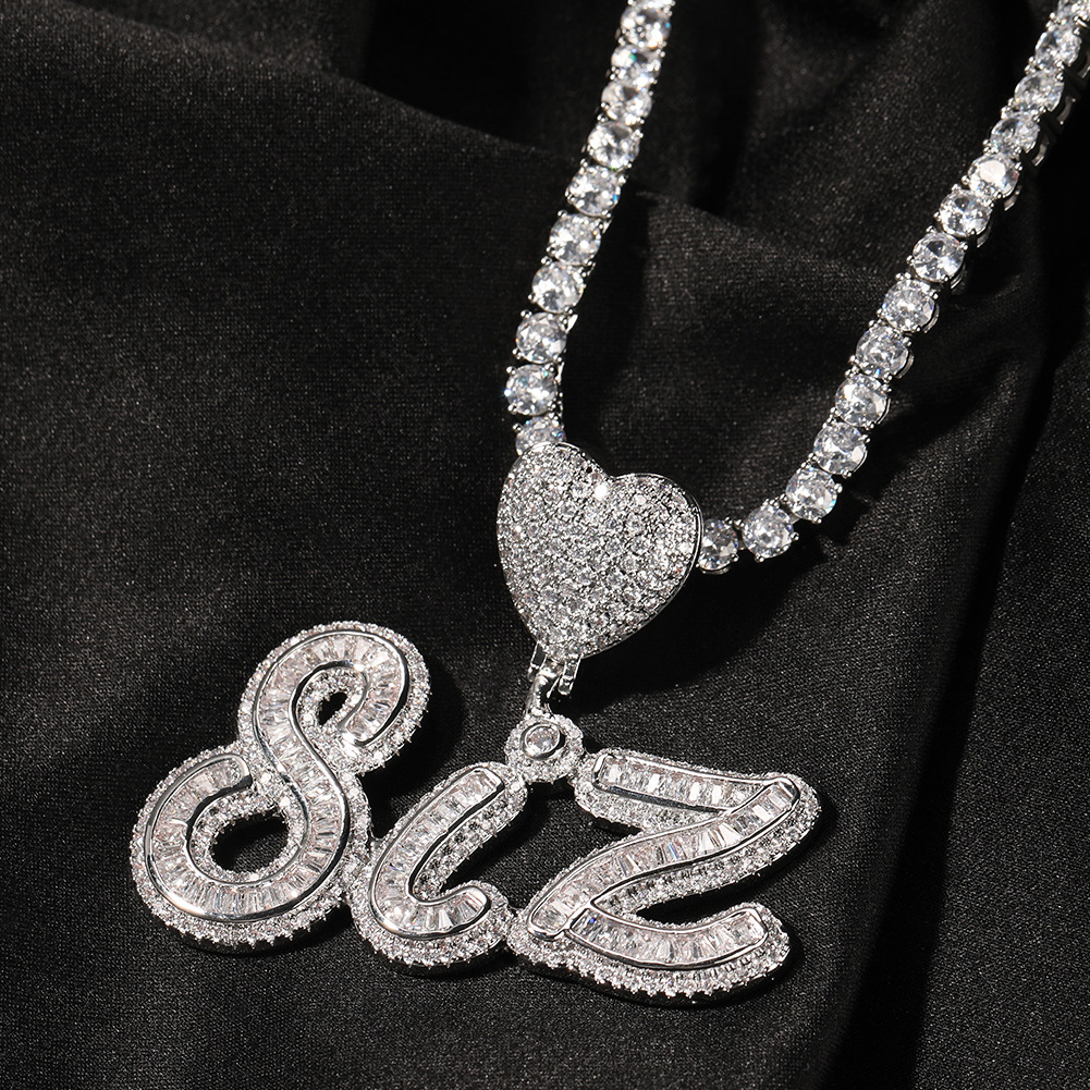 New Hip-Hop Letter Pendant Diamond-encrusted Love Button Head Ladder Square Signature Letter Necklace Personalized Custom Rap Accessories