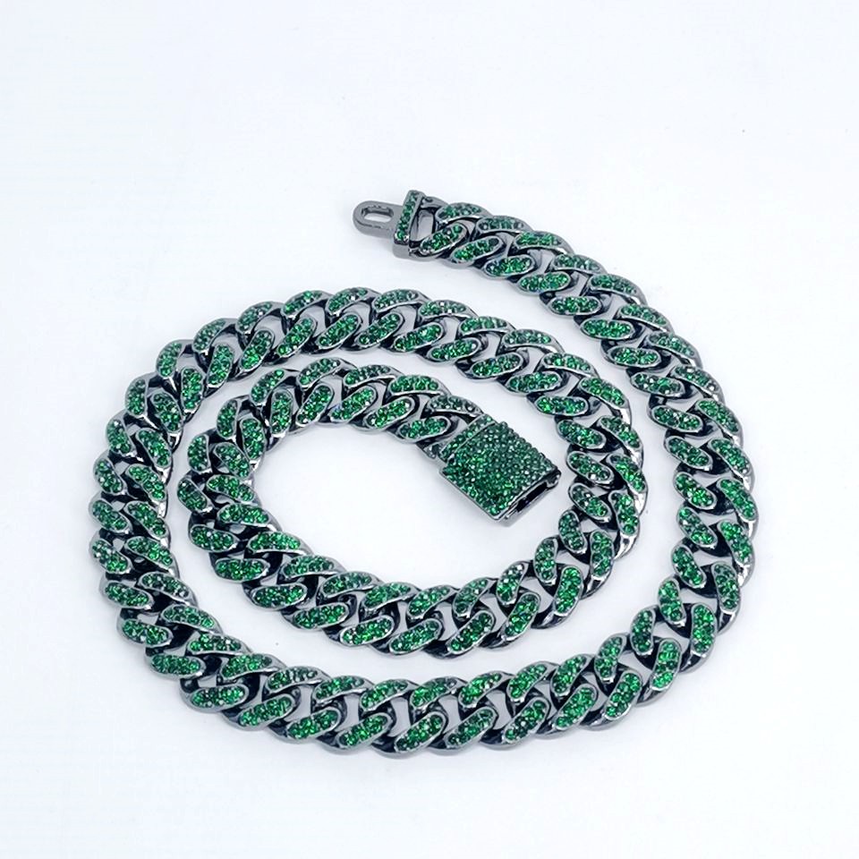 European and American 12mm Round Emerald Stud Flip Head Men's Alloy Necklace Rap Cross Border Hip Hop Cuban Chain