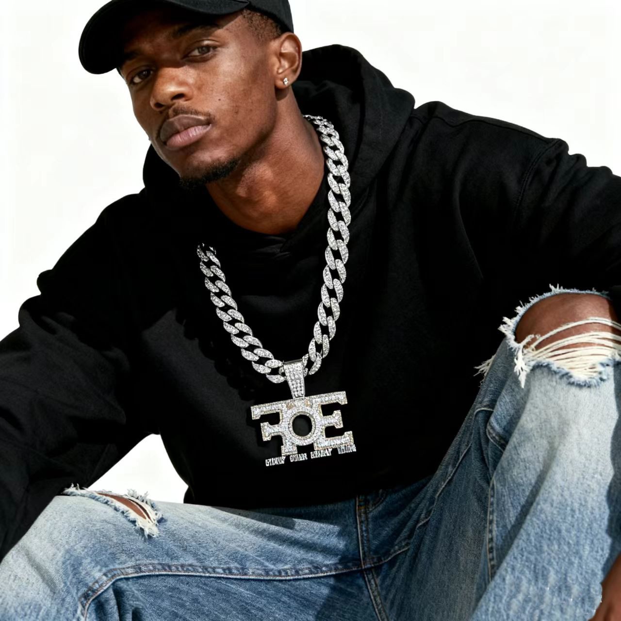 Hip-Hop Men's Street Rap Family over Every Thing Pendant Full Diamond Letter Trendy Brand Necklace