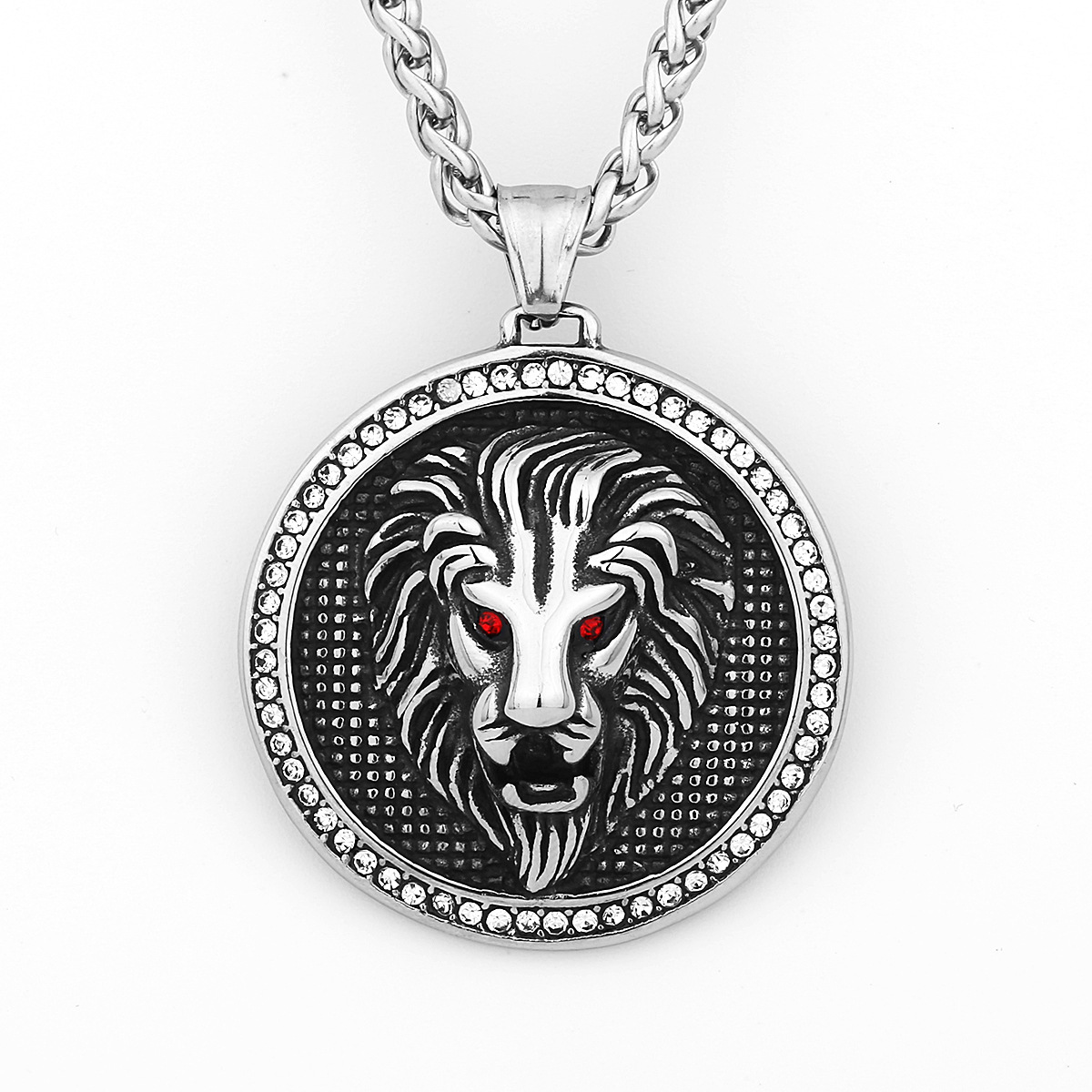 Hip Hop Cuban Chain Street Diamond Lion Head Titanium Steel Pendant Men's Rap Hangtag Pendant Necklace