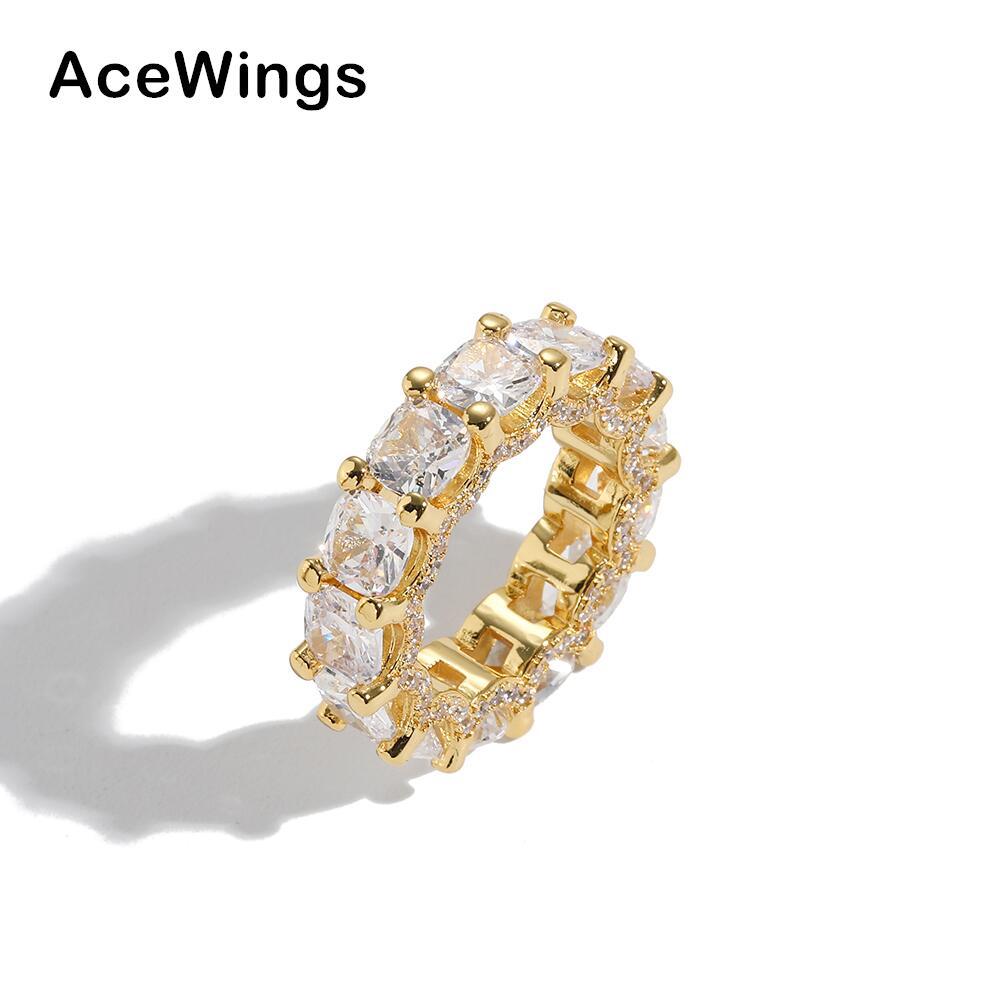 European and American Hip Hop Ring Amazon Hot Selling Full Zirconium Closed Zircon Copper Ring Ladder Square Zirconium Ring Women's Food Finger Ring