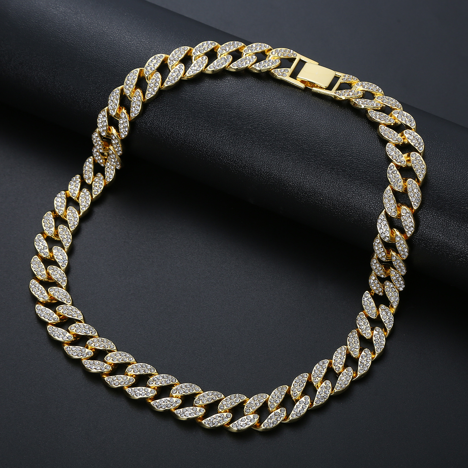 European and American Cross-border Men and Women's Fashionistas Cool Necklace Rap Accessories Full Diamond Large Gold Chain Cuban Chain Hip Hop Necklace