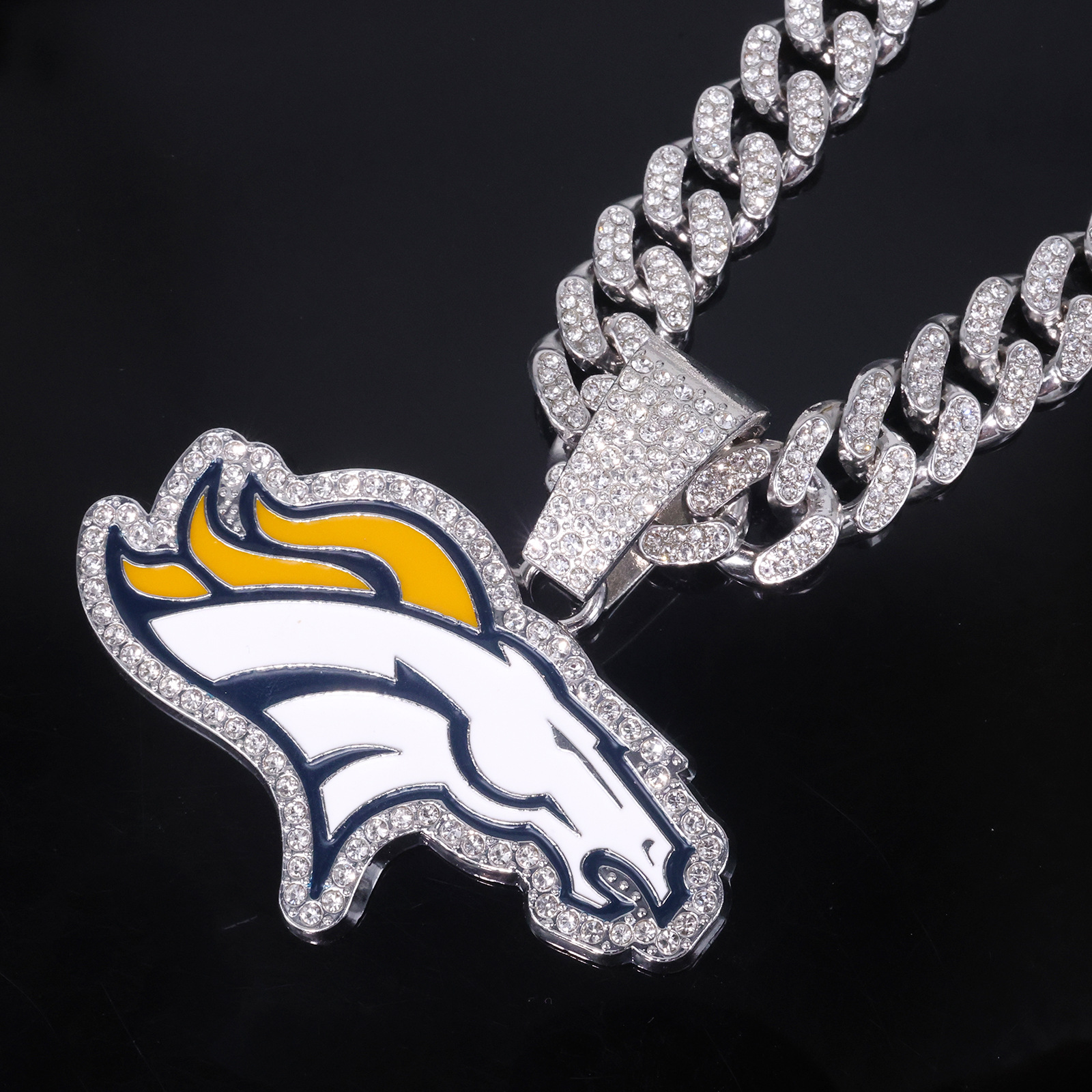 Street Dance Alloy Jewelry Oil Painting Little Mustang Team Logo Pendant Rap Personality Hip-Hop Necklace Manufacturer Wholesale