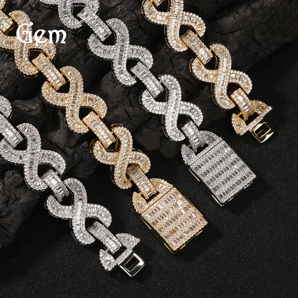 European and American Diamond-Encrusted Summer Men's Necklace Trendyy Stylish Infinite Symbol 14mm Diamond-Encrusted Hip-Hop Rap Necklace Jewelry