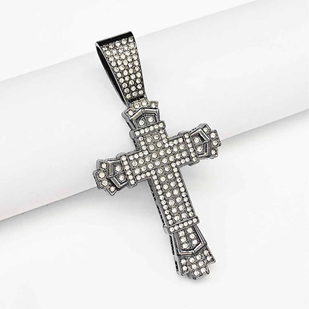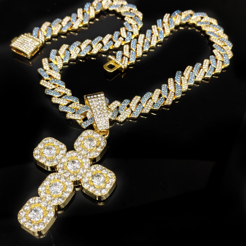 Wish Amazon Best Selling European and American Personalized Large Diamond Cross with Cuban Chain Men's and Women's Pendant Hip-Hop Rap Necklace