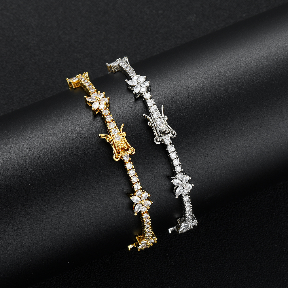European and American Jewelry New Butterfly Tennis Bracelet Copper Inlaid with Zircon Couple Rap Hip-Hop Tennis Bracelet