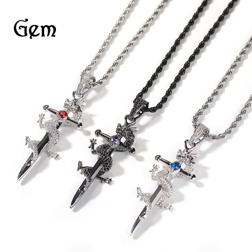 Gu Meng factory direct cross-border hip-hop retro Chinese Dragon cross micro-inlaid zircon pendant rap trend accessories