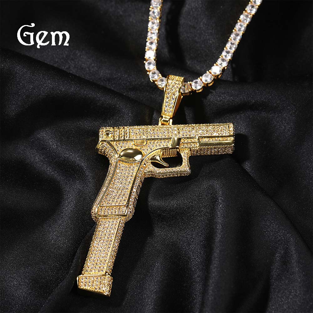 Punk Retro Pistol Pendant Men's Necklace Hiphop Hip-Hop Rap Full of Diamonds Cool Personalized Creative Jewelry