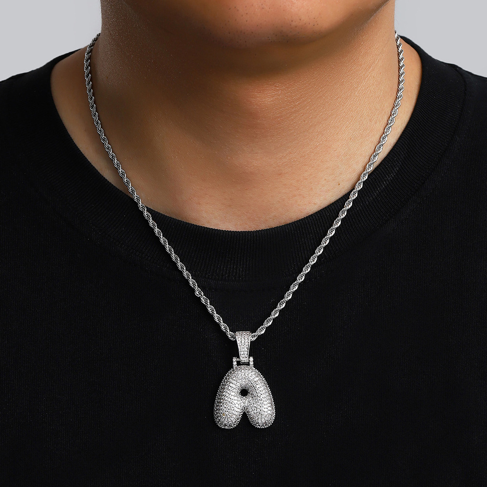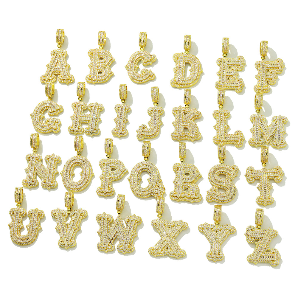 Cross-border hip-hop copper micro-inlaid zircon 26 English letter pendant rap fashion fat letter pendant accessories wholesale