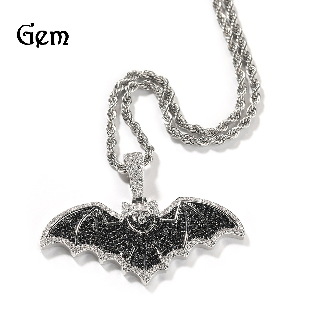 European and American Creative New Dark Gothic Style Full Diamond Bat Pendant Personalized Fashion Men's Hip Hop Rap Necklace Trendy