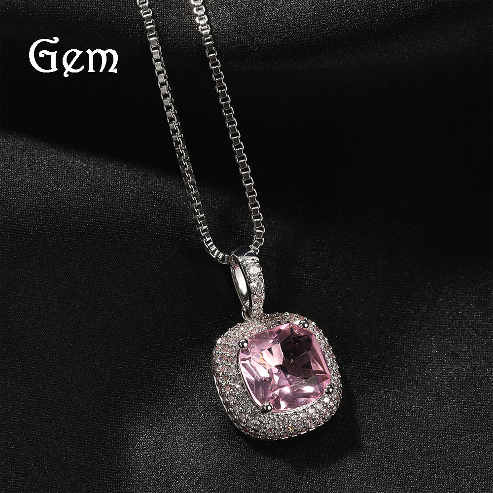 European and American Hip-Hop New Pink Stereo Square Zircon Pendant Hiphop Rap Trendy Ins Style Accessories Wholesale