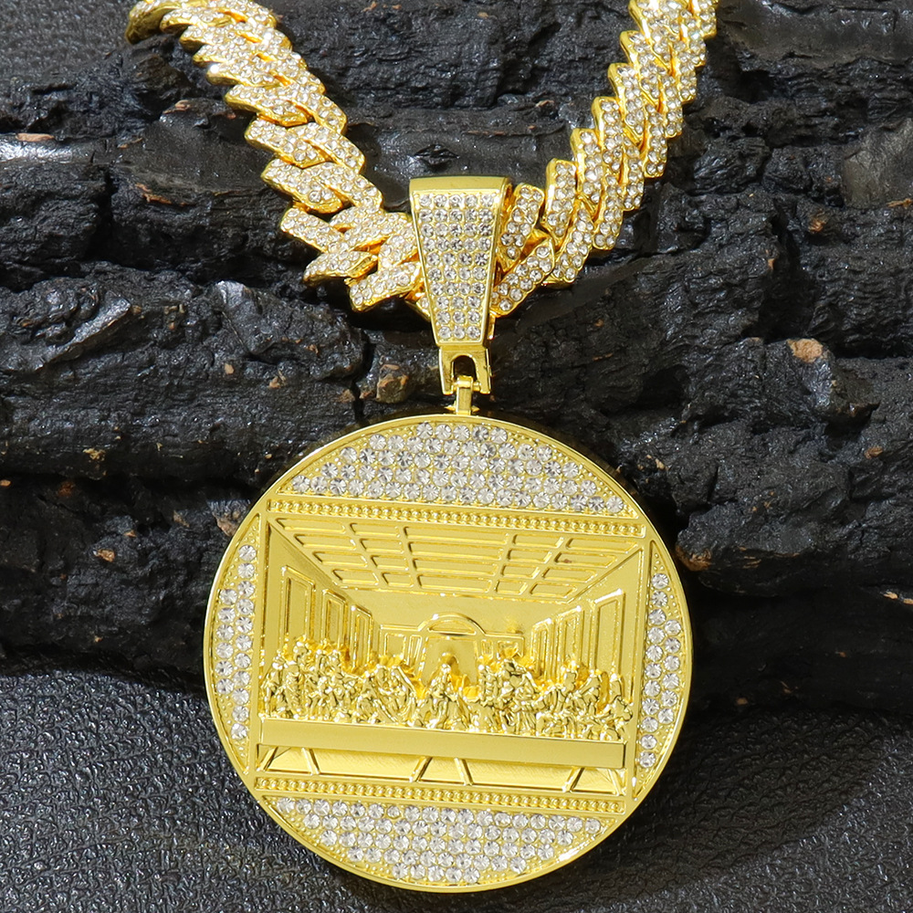 Diamond-encrusted Balance Round Brand Pendant Necklace Personalized Hip-hop Style Street Dance Rap Wear Pendant Diamond Cuban Chain Necklace Chain